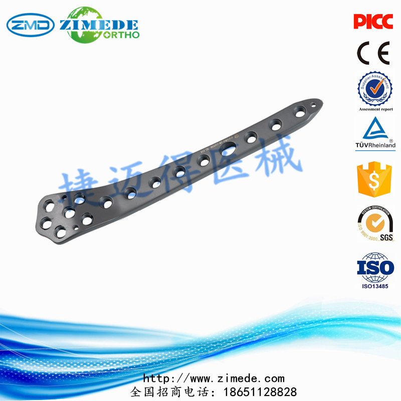 萬向鎖定接骨板是關(guān)節(jié)部位的釘子可以調(diào)整角度的一種鎖定板,他的優(yōu)點是關(guān)節(jié)部位可以根據(jù)骨折線的需要進行角度調(diào)整,而以往的鎖定板頭部的釘子是只有一個角度的,而萬向型的鎖定板可以進行30度左右的調(diào)節(jié),對于關(guān)節(jié)面的重建會帶來很大的方便,像depuy等知名品牌已經(jīng)進行了大量的臨床使用。我們公司的萬向型鎖定板和他們相比有很多優(yōu)勢,5.0系統(tǒng)我們選用了6.0的空心鎖釘,4.0系統(tǒng)我們選用了4.0 的空心鎖釘?招逆i釘我們采用松質(zhì)骨螺紋設(shè)計,可以大量提高骨的把持力,空心可以先打入克氏針,極大的方便了操作。而萬向板上轉(zhuǎn)環(huán)帶有限位銷,手術(shù)時可以不用對抗,操作和上普通螺釘一樣簡單。 萬向鎖定板,集諸多優(yōu)勢于一身,深受國內(nèi)外廣大醫(yī)生臨床上的使用。